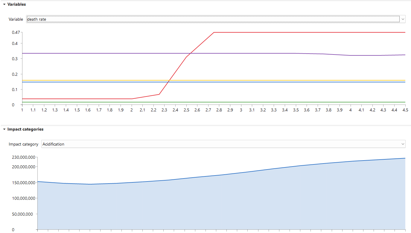 You will then get LCIA results for each simulation step which can be exported to excel with the corresponding model variables.