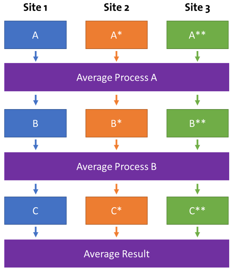 To create a horizontally averaged dataset, multiple UPIs or aggregated processes from different production chains that supply the same reference flows are combined. For unit processes, all exchanges are averaged. For system processes, the inventory results of each process are averaged to create a new dataset. Horizontal averaging allows data representing a broader range of production sites/types to used, but is methodologically less robust than vertical averaging due to potential differences in the averaged operations [1].