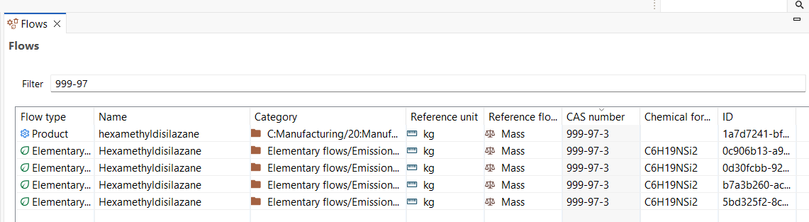 Filter for flow names, CAS numbers or chemical formula in openLCA