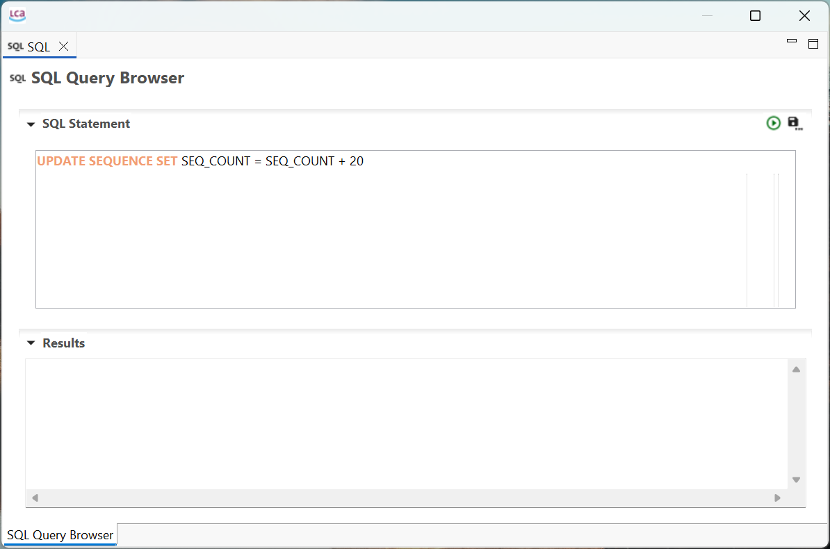 Note: Don't try to open an active database with external SQL clients. Importantly, when adding new database elements, the SEQ_COUNT of the database needs to be updated to reflect the number of elements added. This could be solved through simple queries like (for an example of adding 20 new elements): UPDATE SEQUENCE SET SEQ_COUNT = SEQ_COUNT + 20